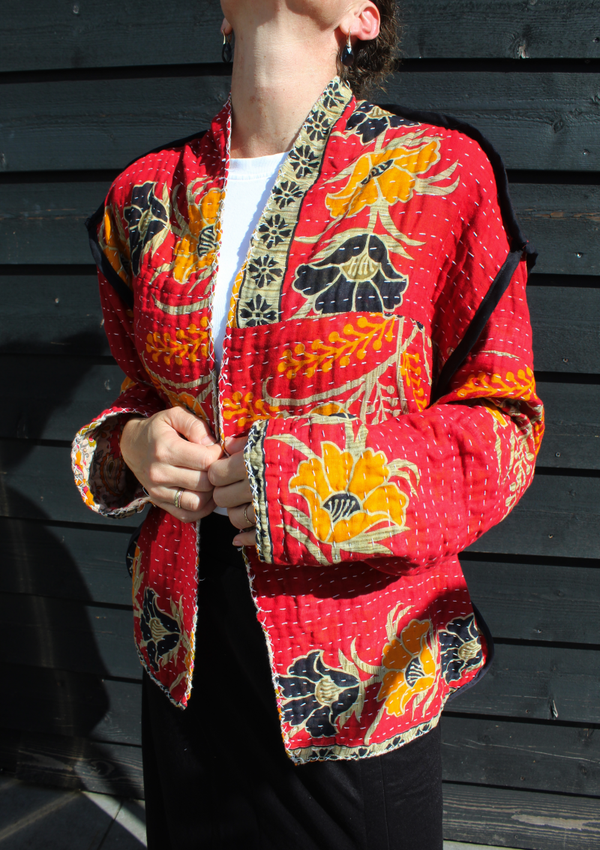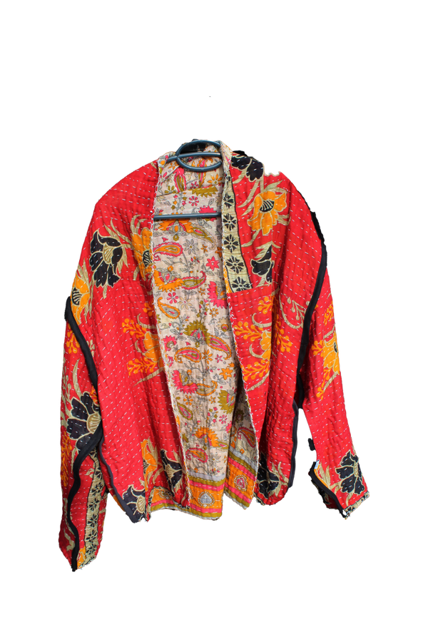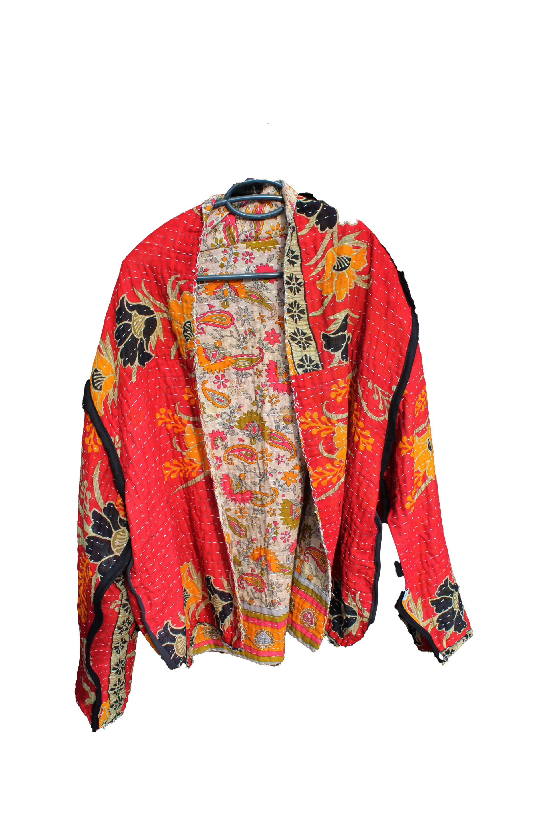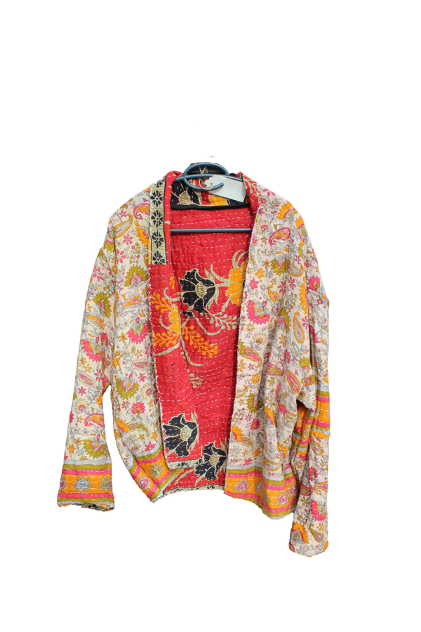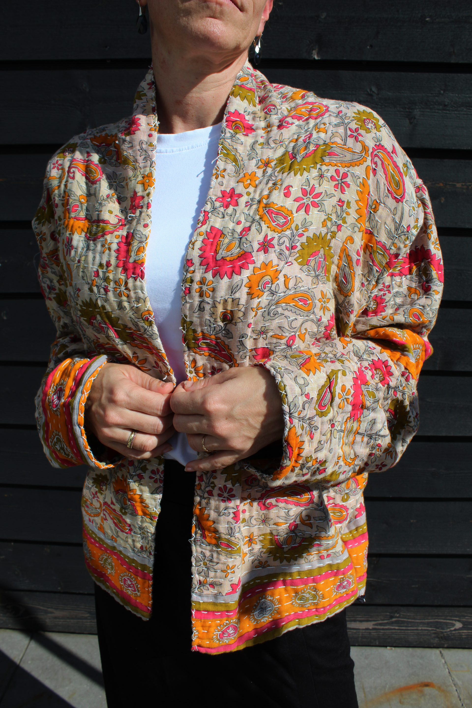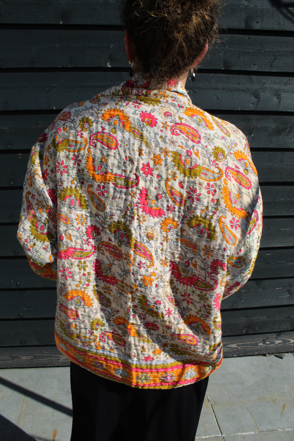 Reversible jasje gemaakt van Indiase vintage sari's in maat S.