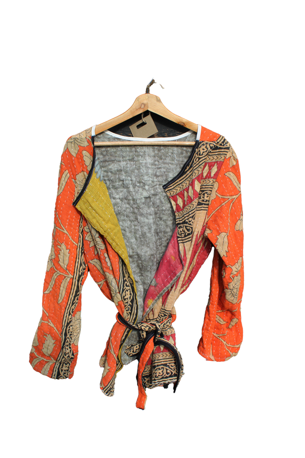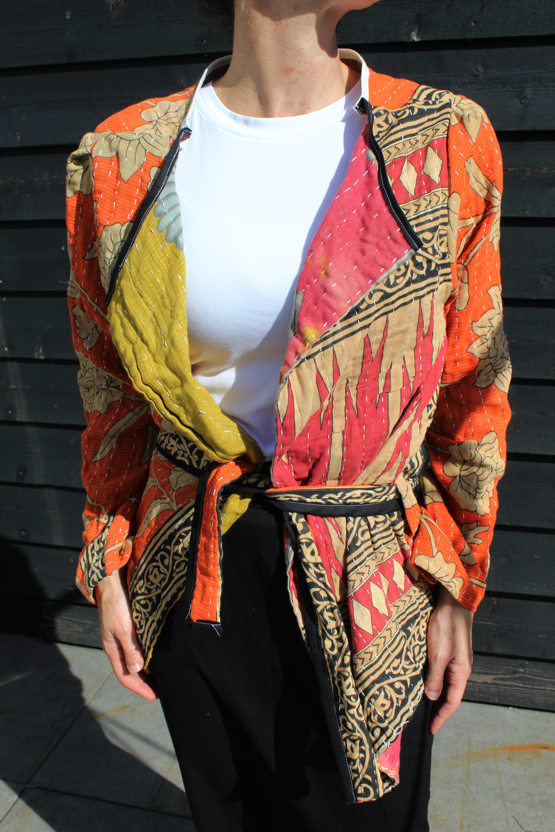 Jas gemaakt van Indiase vintage sari's in maat S.