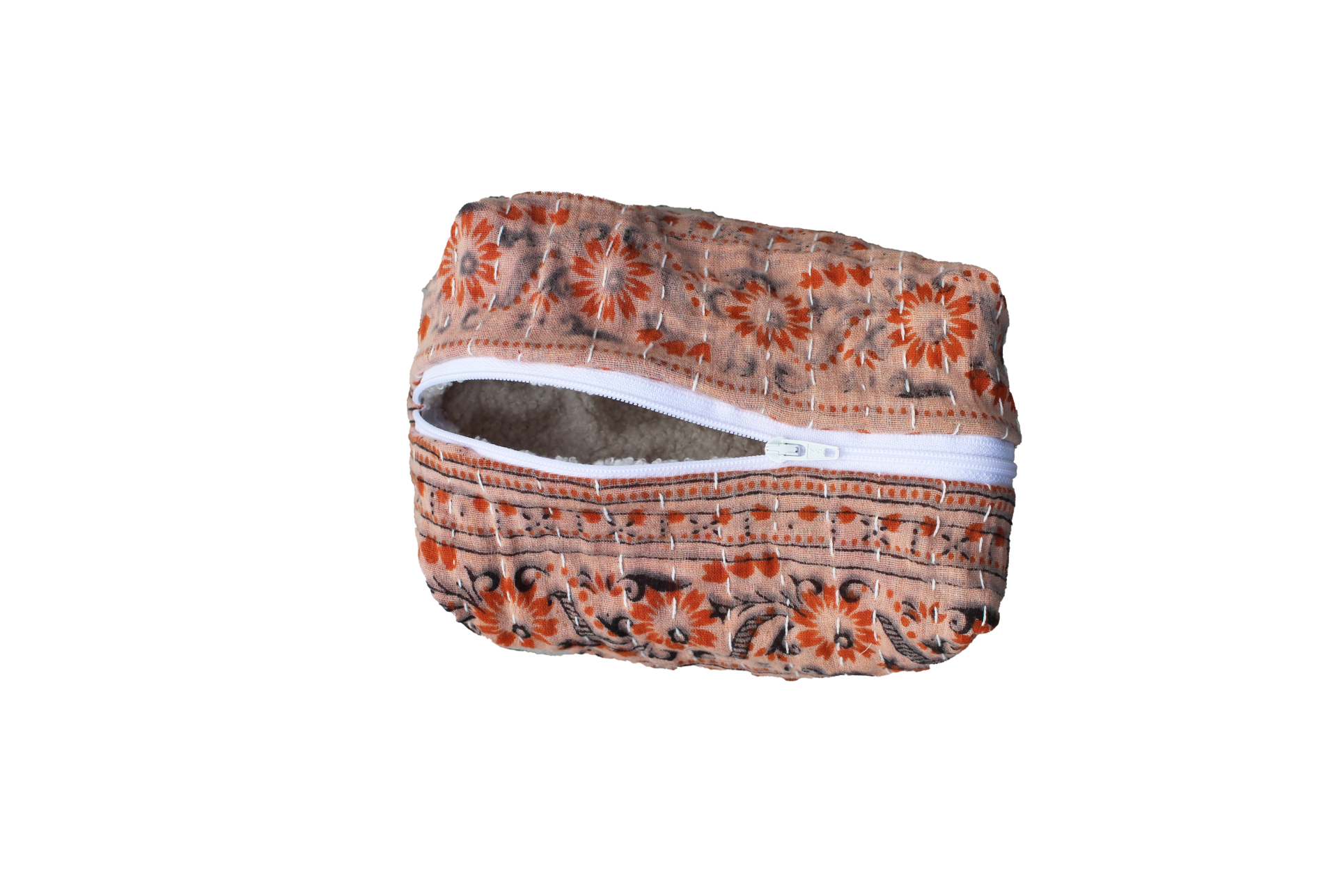 Makeuptasje gemaakt van vintage Indiase sari's met teddy binnenkant.