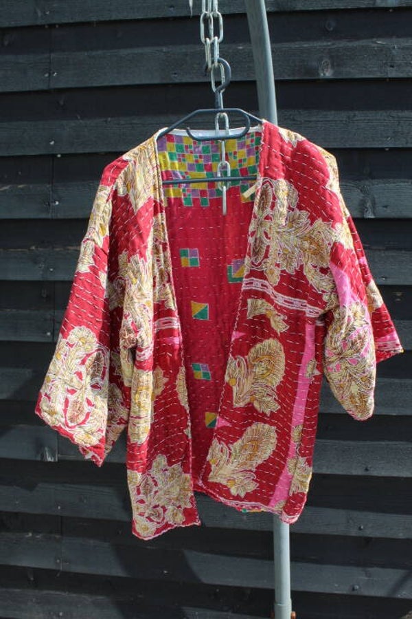 Jasje gemaakt van vintage Indiase sari's, aan beide kanten te dragen