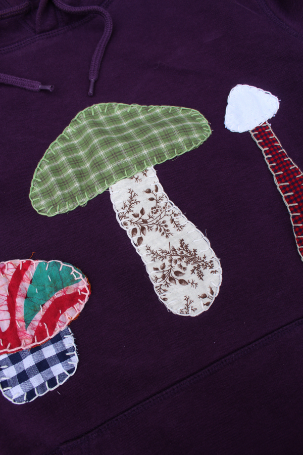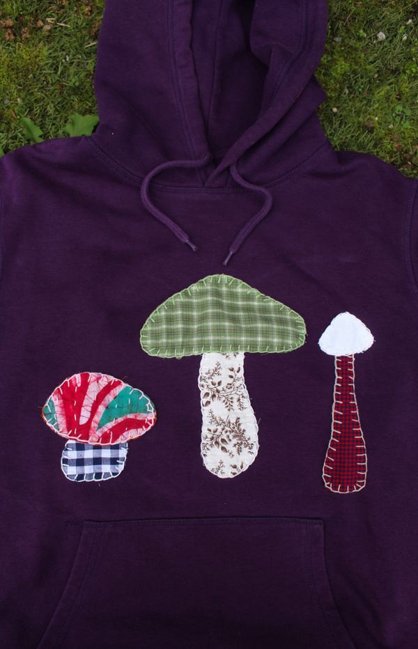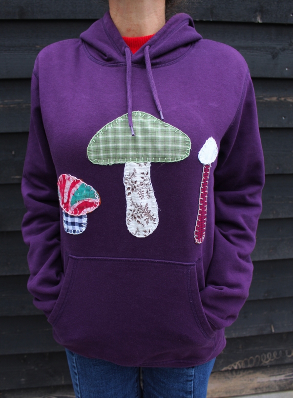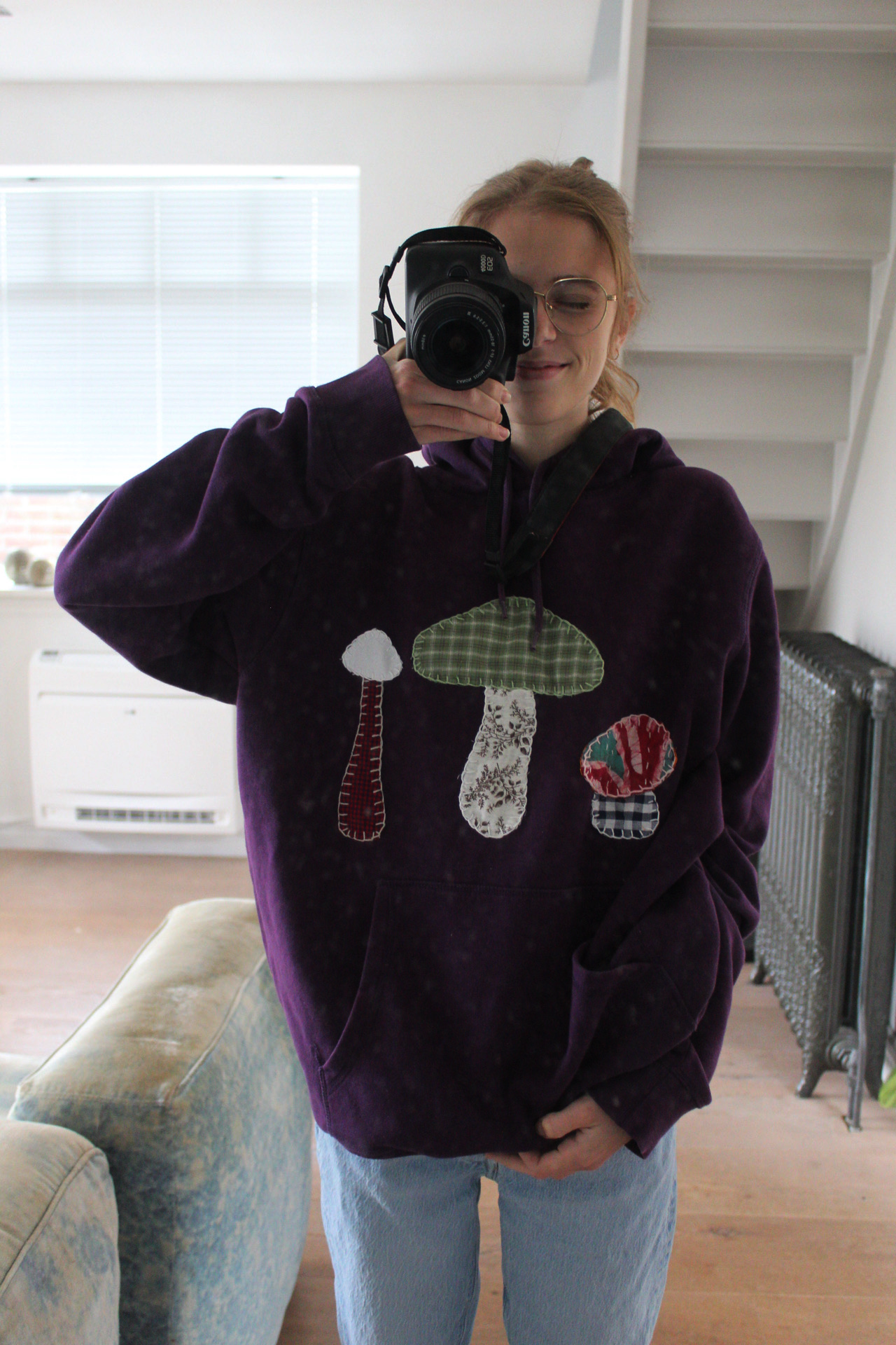 Tweedehands trui, met restjes stof erop geborduurd. Valt als een M.