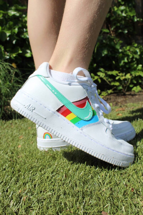 Custom Nike Air Force ones. Beschilderd met Angelus leerverf en afewerkt met een speciale finisher. Wil je het graag in andere kleuren, of andere aanpassingen? Vul het in in het contactformulier! De prijs verschilt per schoenmaat, dus wij nemen na aankoop contact met je op!