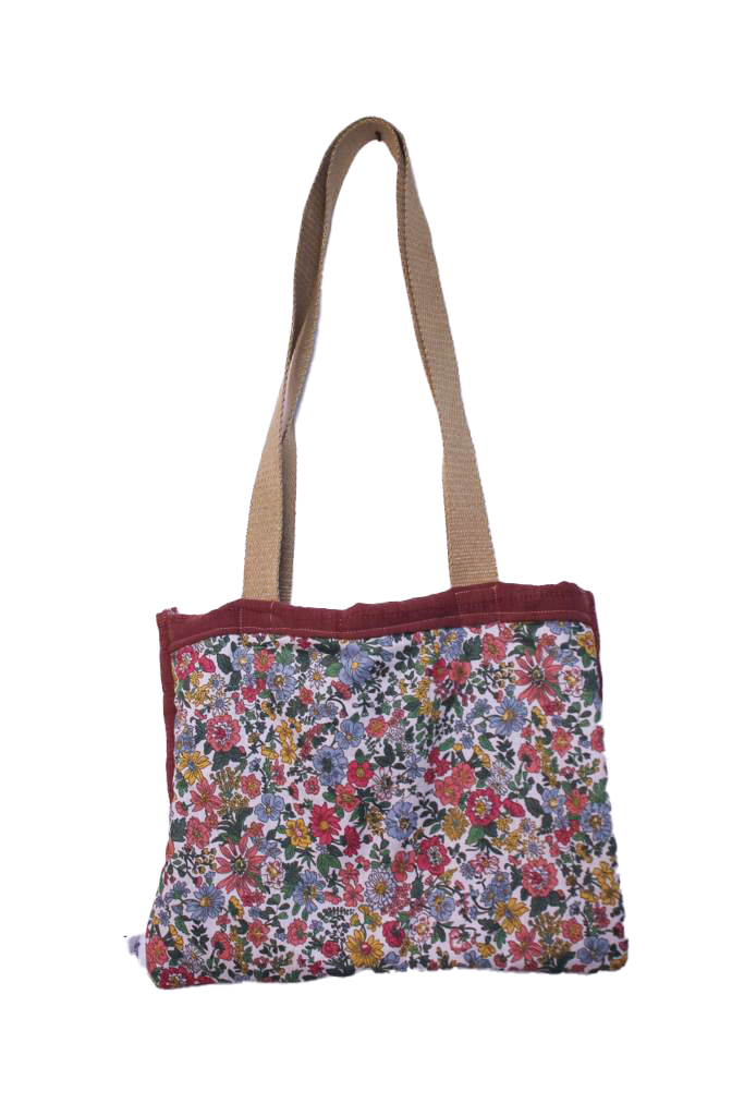 Schoudertasje met bloemen - gevoerd met roze gewatteerde stof. Tip; leuk samen met de oudroze kimono!